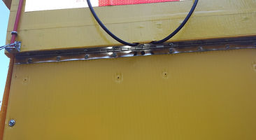 Outside of the trailer, rear wall. Hinge is slightly visible